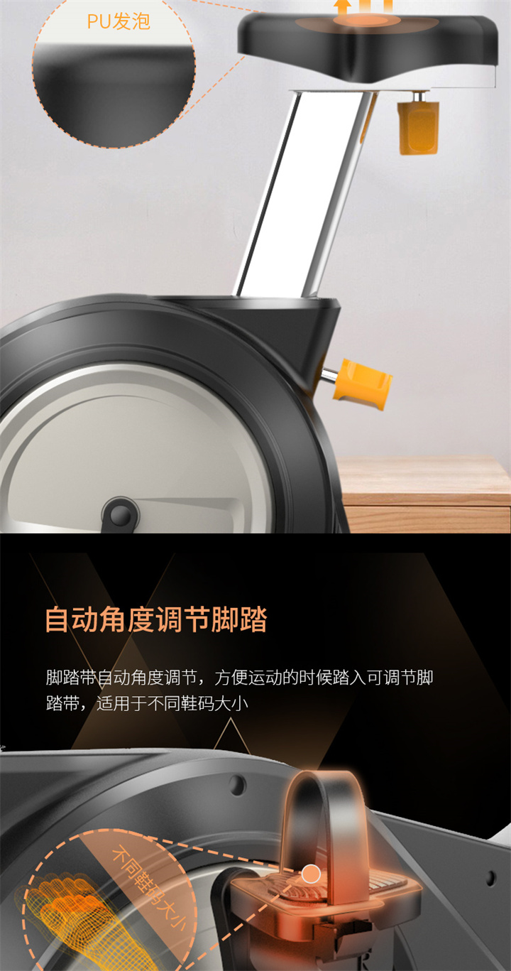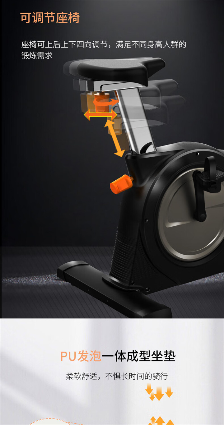 舒华卧式商用健身车SH-B9100U(V10)采用自发电,40段电磁控阻力系统,9.3kg飞轮重量。